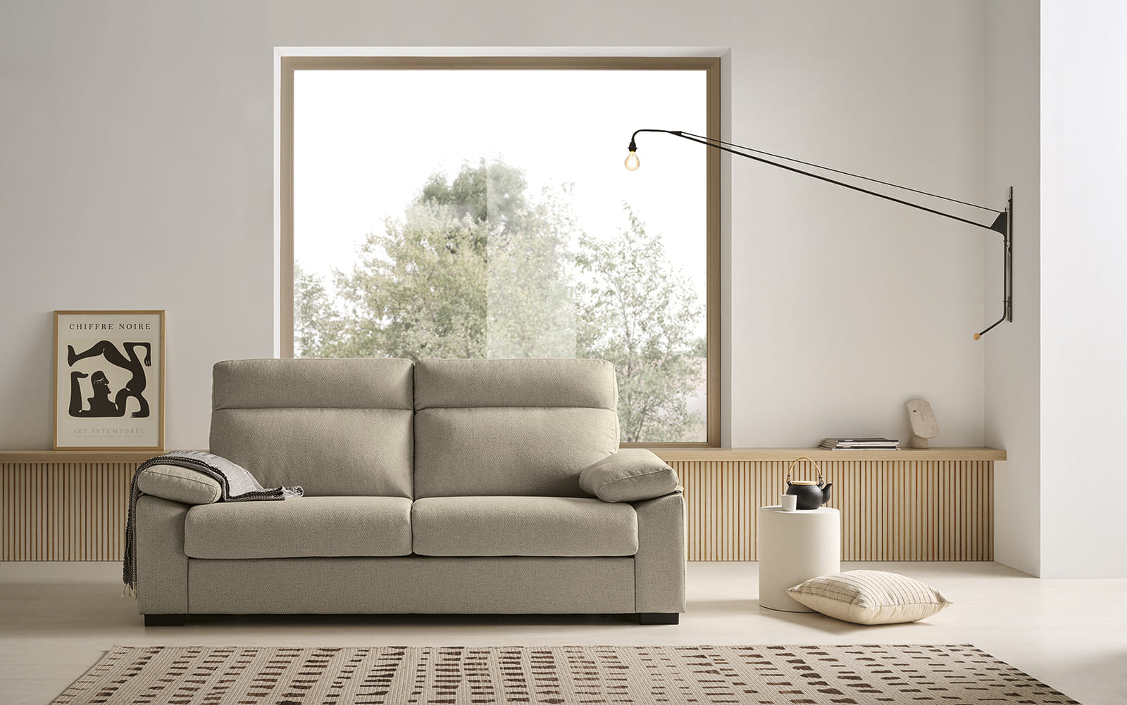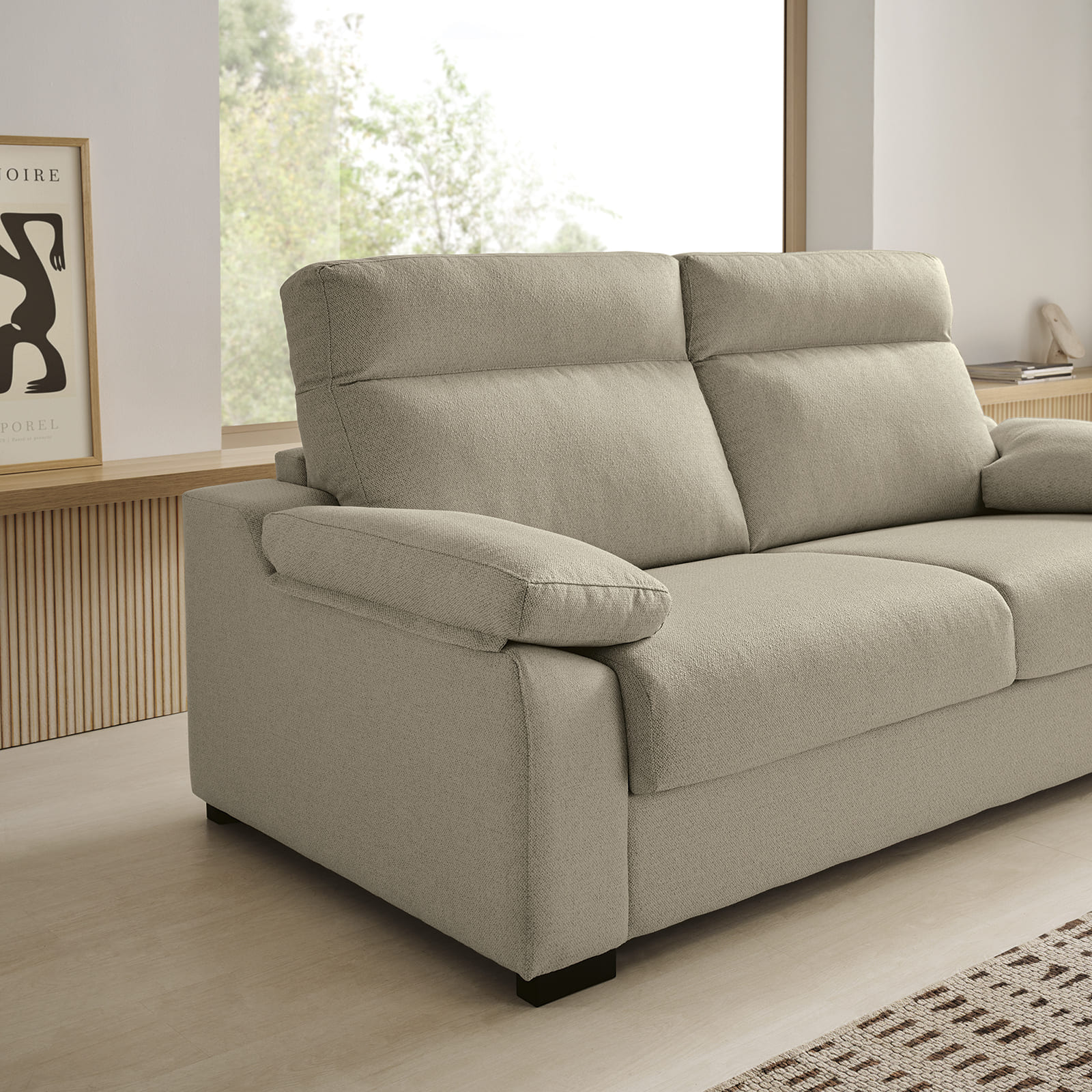 Apertura: Sistema italiano que convierte el sofá en cama con un solo movimiento.