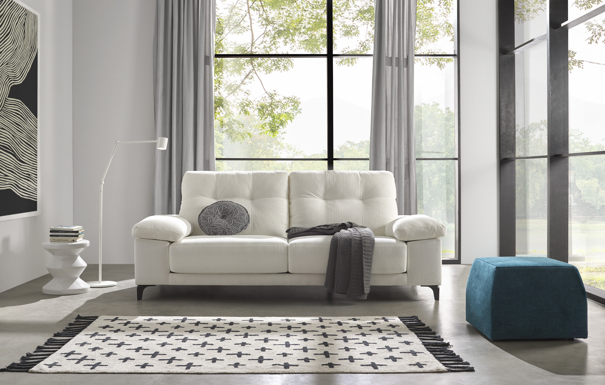 Este sofá de aspecto cálido y elegante, proporciona un confort inigualable gracias a que sus asientos, contienen una capa de 12 cms de viscolástica de inyección de molde, lo que proporciona una sentada muy envolvente.