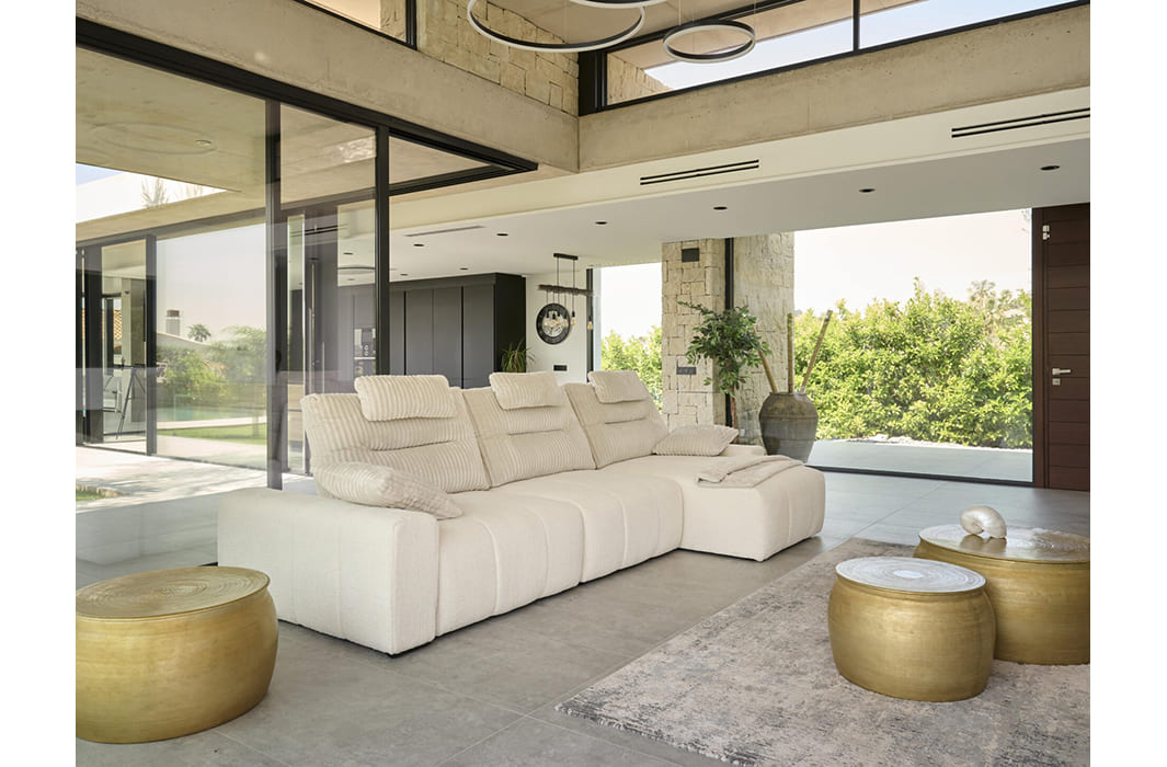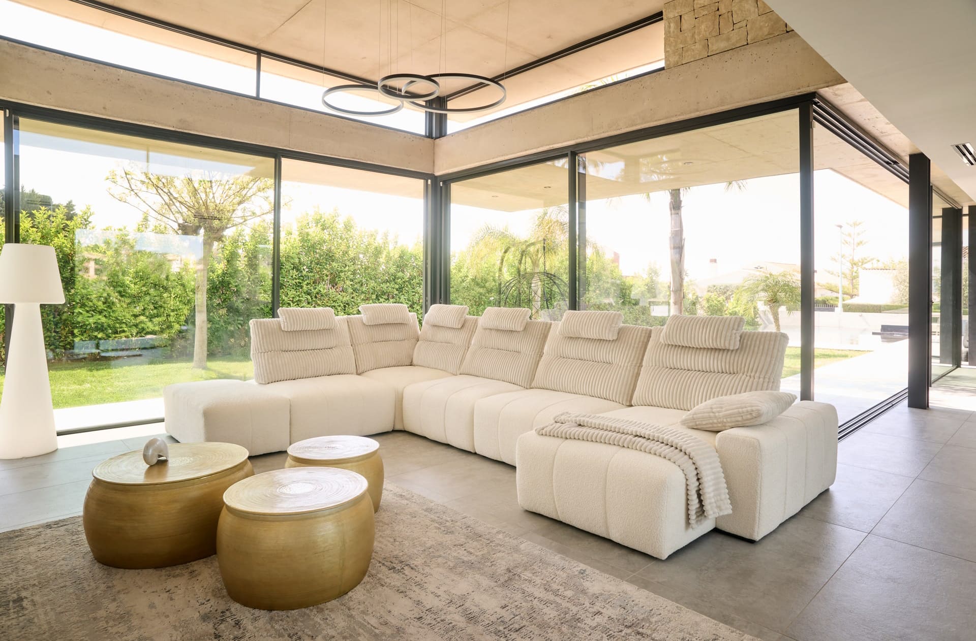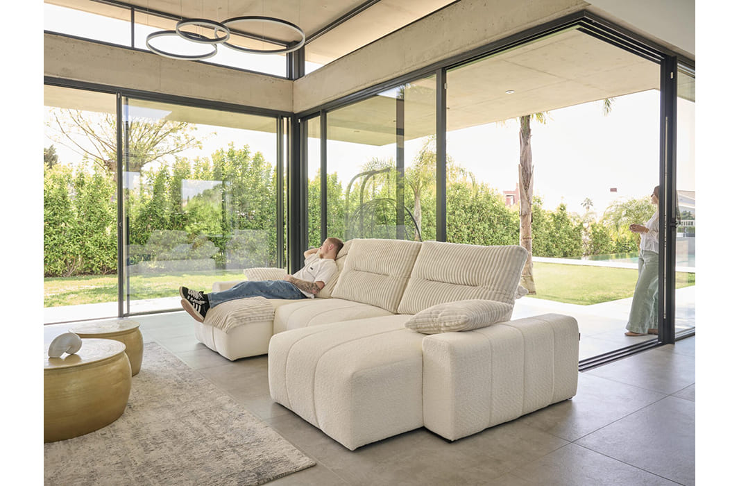 Este innovador modelo destaca por su sofisticado mecanismo deslizante-carro, una solución funcional y estética que permite una ampliación del asiento de forma fluida. Sus cojines de cabecera ofrecen un apoyo envolvente que eleva la experiencia de descanso.