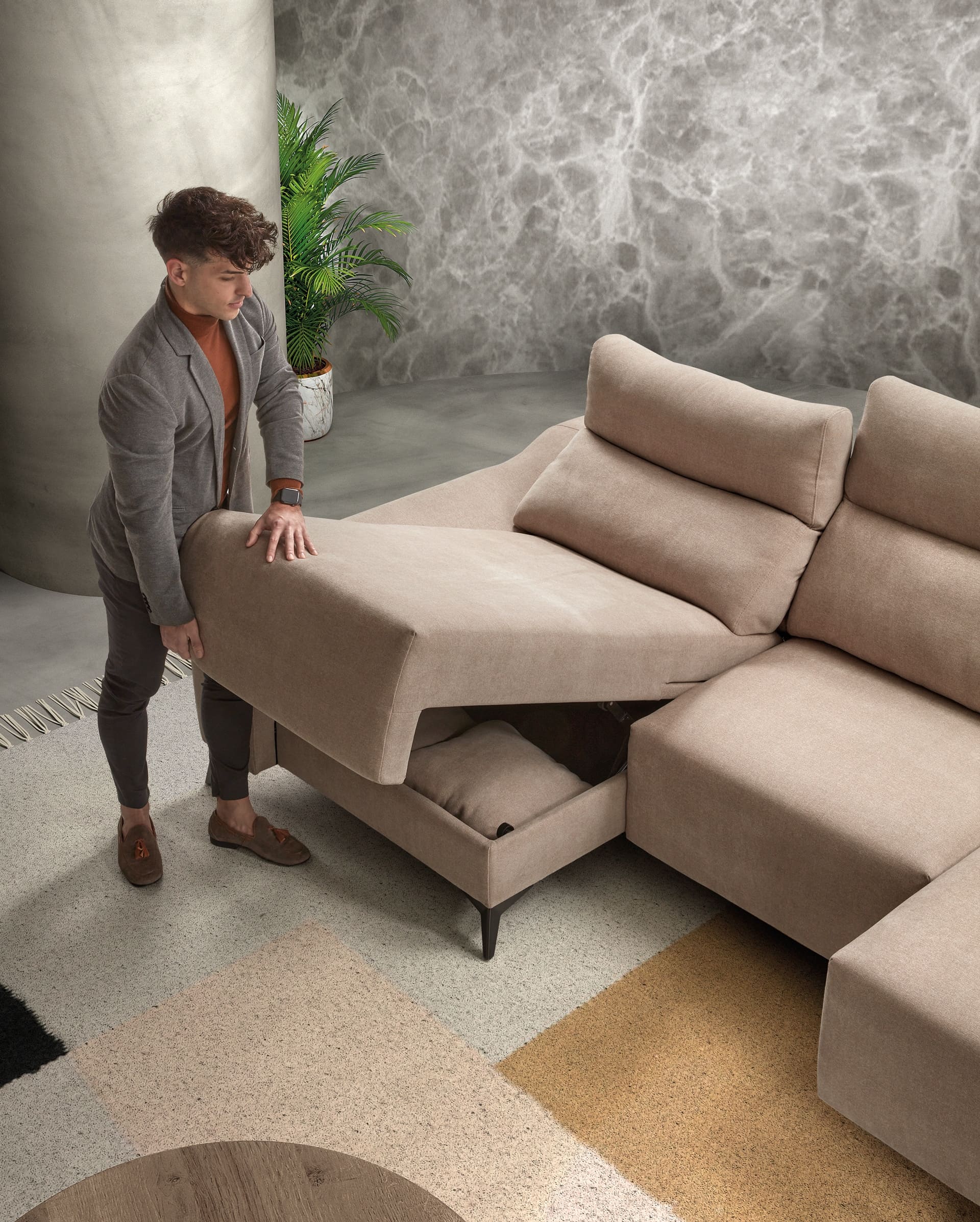 USB: Opción disponible en la parte superiror base del módulo sofá.