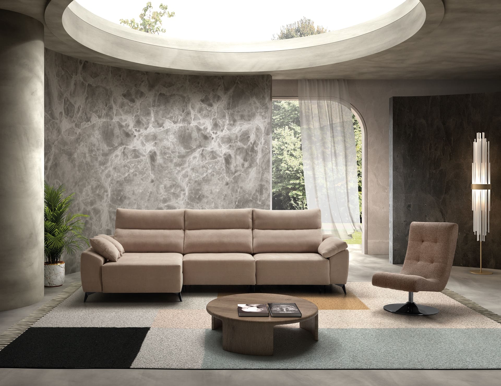 Composición modular: Disponible en 2, 3 plazas y chaisslongue.