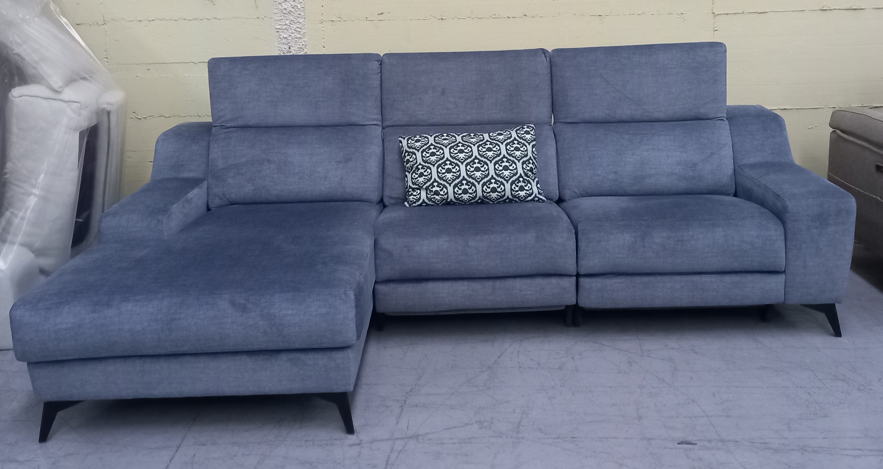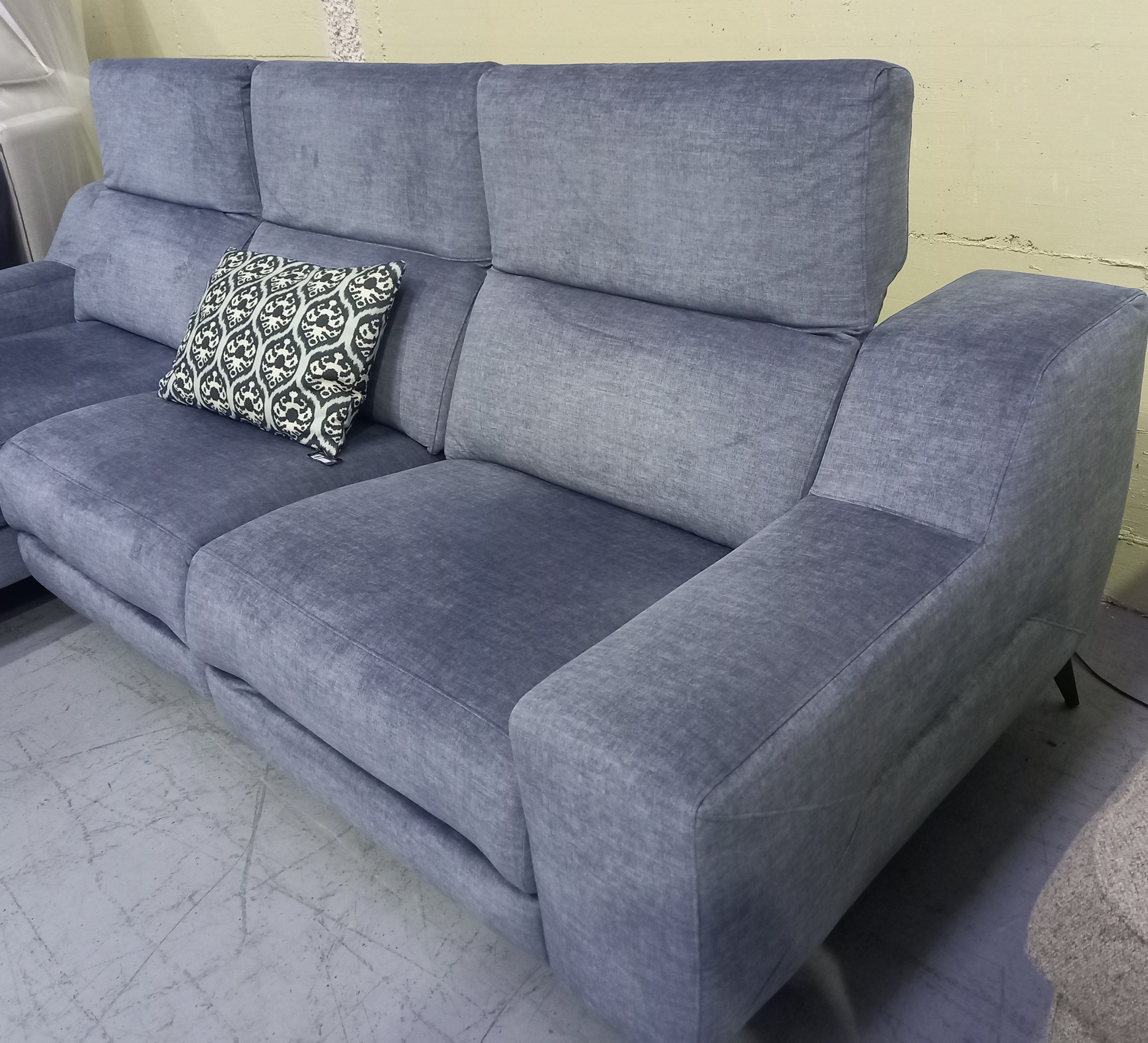 Precioso sofá en azul empolvado, con su sistema relax, disfrutarás de un confortable descanso y de un modelo de gran estilo.
