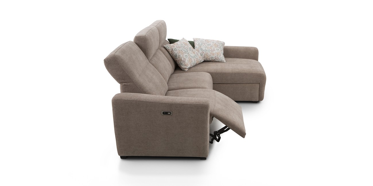 Mecanismos: En asientos con mecanismos relax, botonera oculta en módulos centrales, y botonera con USB el módulos con brazo. Cabezales reclinables varias posiciones. Apertura de chaisslongue, arcón con bombines hidráulicos de gas.